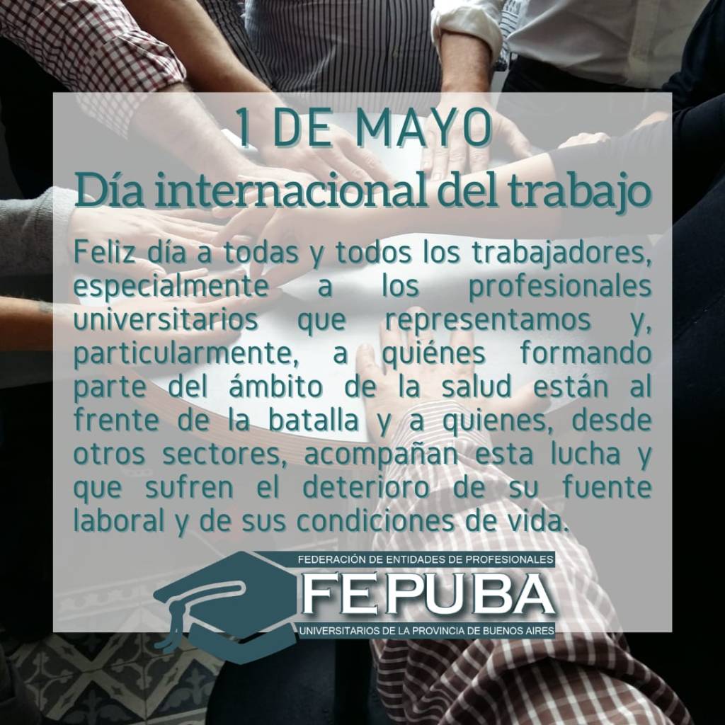 Con motivo de la conmemoración del Día Internacional del Trabajo, la Federación de Entidades de Profesionales Universitarios de la Provincia de Buenos Aires, envía un afectuoso saludo a todas y todos los trabajadores.