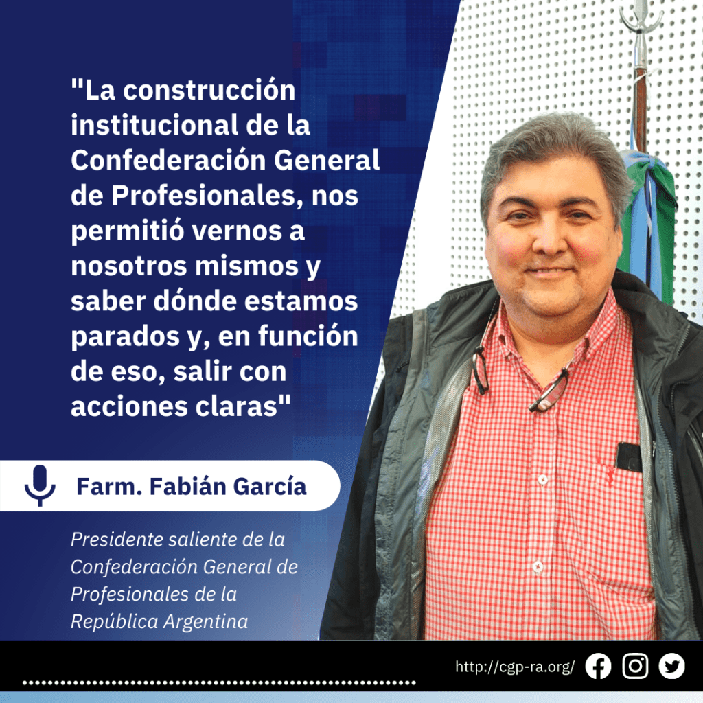 En tanto , el presidente saliente de CGP, el Farm. Fabián García , realizó un balance positivo de su gestión y reflexionó sobre el rol de las organizaciones profesionales en el transcurso de la pandemia: