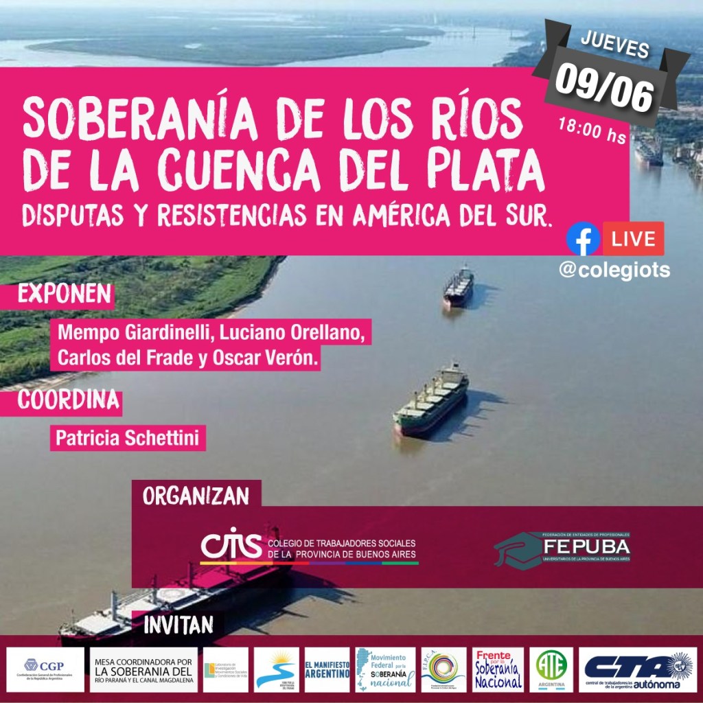 Declarado de interés por la Federación de Entidades de Profesionales Universitarios de la Provincia de Buenos Aires, el día jueves 9 de junio a las 18 hs. se llevará a cabo el conversatorio virtual «Soberanía de los ríos de la Cuenca del Plata: disputas y resistencias en América del Sur».
