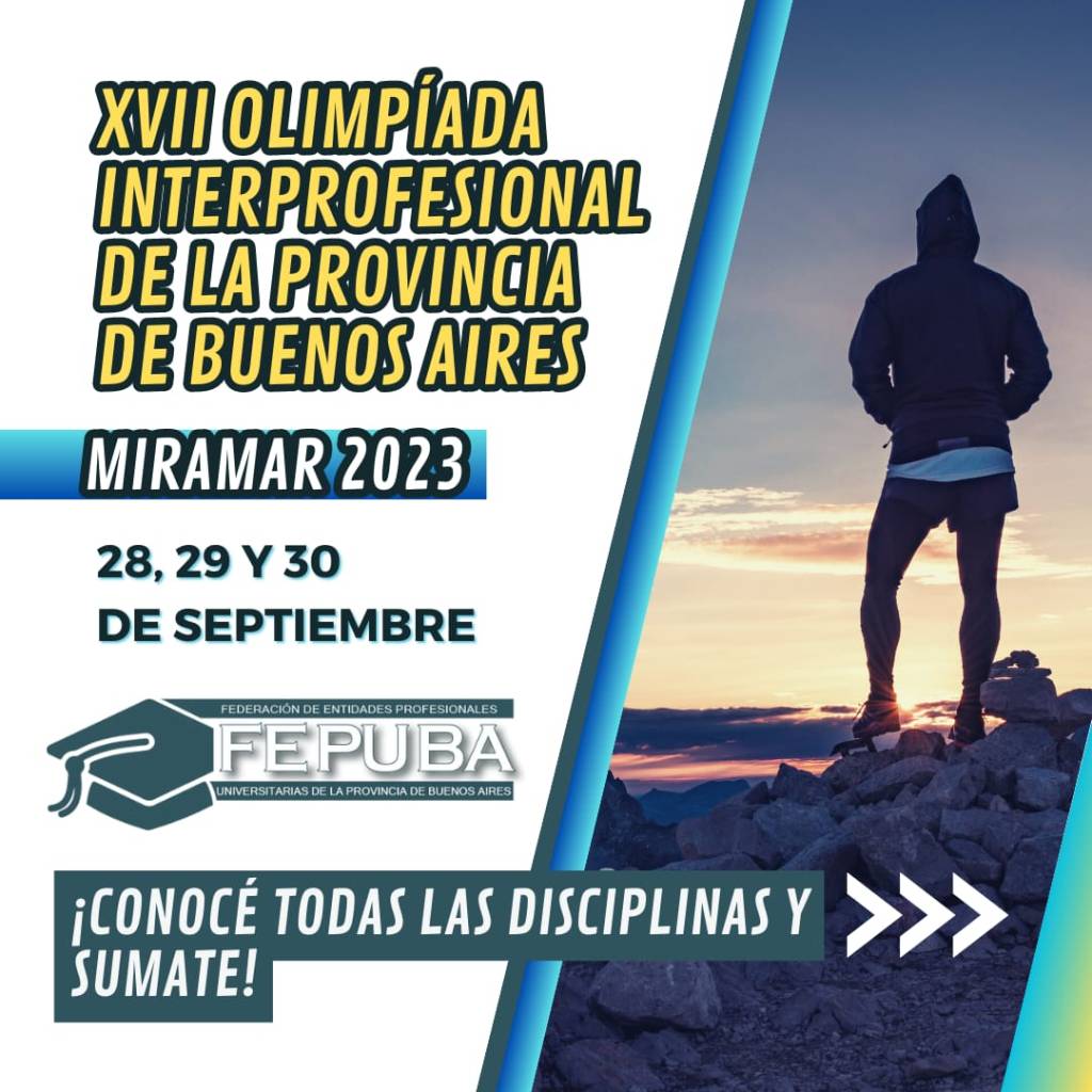 El 28, 29 y 30 de septiembre se llevará adelante en la Ciudad de Miramar la XVII Olimpíada Interprofesional de la Provincia de Buenos Aires organizada por la Federación de Entidades Profesionales Universitarias de la Provincia de Buenos Aires.