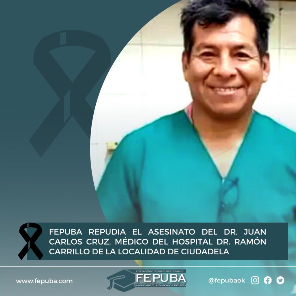 La Federación de Entidades Profesionales Universitarias de La Provincia de Buenos Aires repudia el asesinato del Dr. Juan Carlos Cruz, profesional médico del Hospital Dr. Ramón Carrillo de la localidad de Ciudadela.-