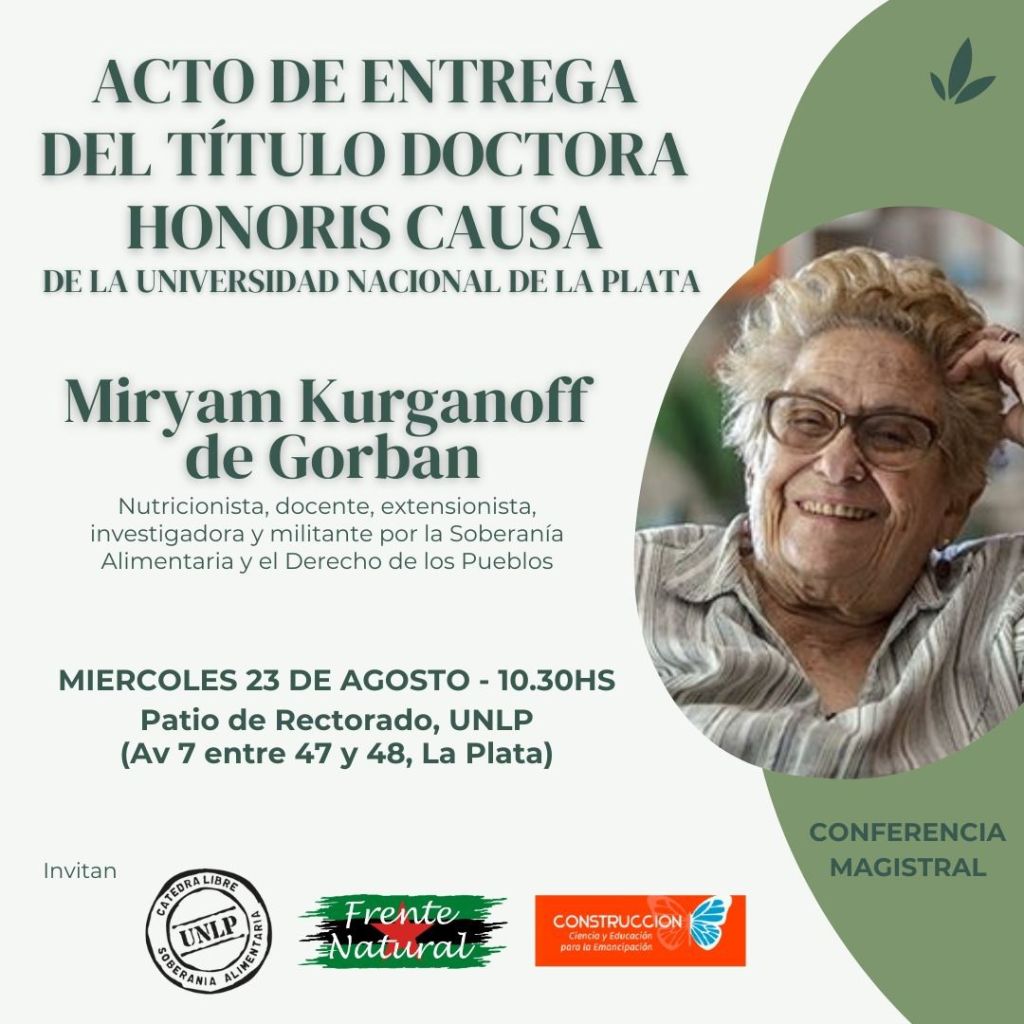 Desde la Federación de Entidades Profesionales Universitarias de la Provincia de Buenos Aires, manifestamos nuestro orgullo y hacemos llegar nuestras congratulaciones por la entrega del título Honoris Causa a la Lic. Miryam Kurganoff de Gorban, por parte de la Universidad Nacional de La Plata.