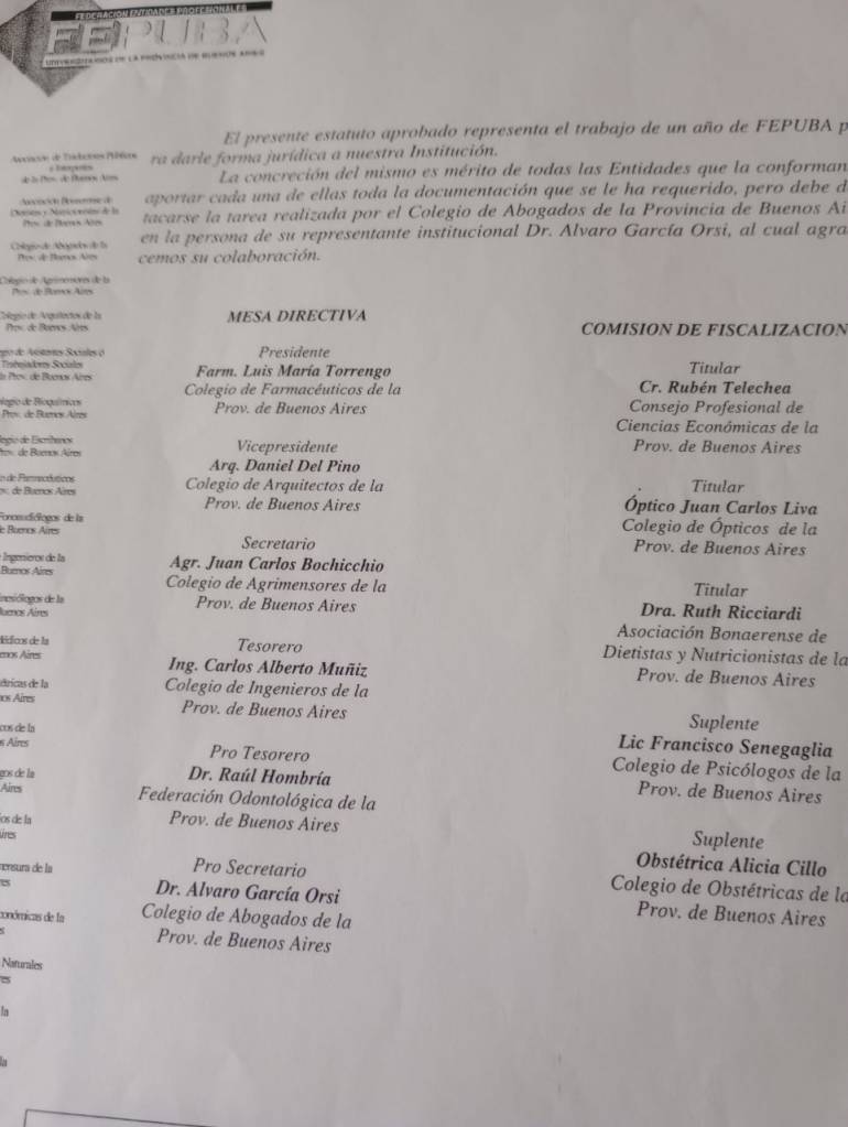 El 26 de septiembre se cumplieron 22 años de la refundación de la entidad. Esta fecha conmemora aquel día del año 2001 en el que, en la Casa del Agrimensor, se realizó la Asamblea de las Entidades Profesionales de la Provincia, se leyó el Acta Constitutiva, se presentó el Estatuto Institucional, y se creó la primer Comisión Directiva tras la refundación, de la cual el farm. Luis Torrengo fue su presidente.