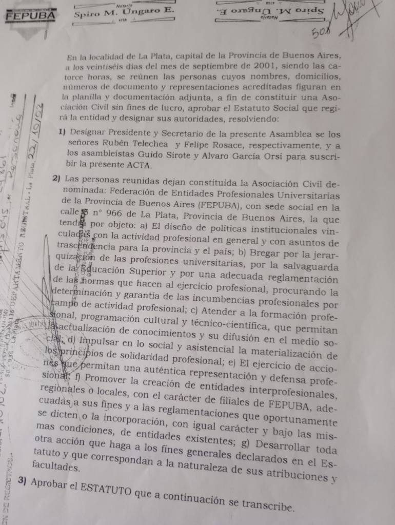 Hacia el año 2001, tras la crisis estructural que atravesaron la sociedad argentina y sus instituciones, se dio impulso a un nuevo estatuto de FEPUBA, aggiornado al rol social de las entidades de representación profesional de los nuevos tiempos.