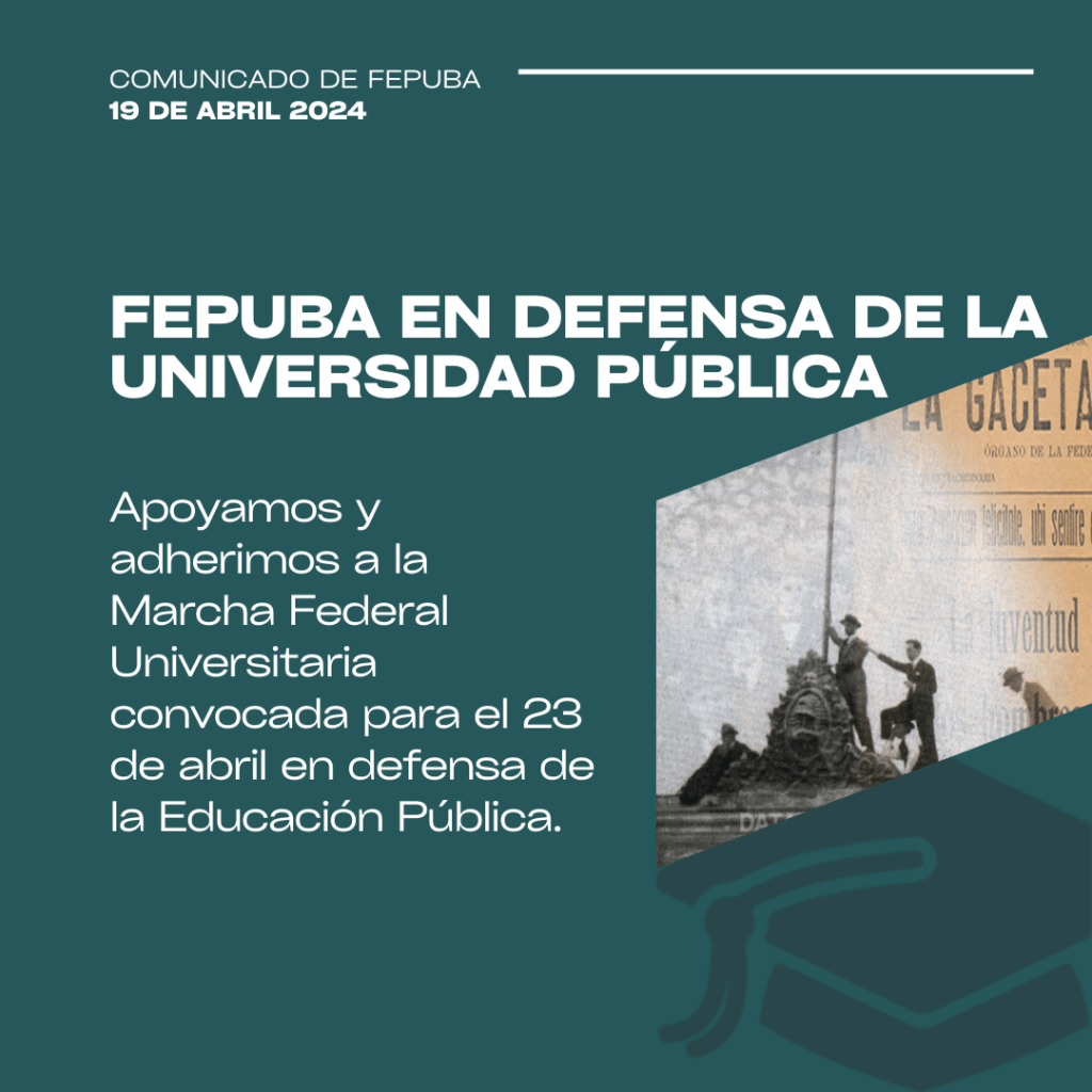 En este marco, FEPUBA apoya y adhiere a la Marcha Federal Universitaria convocada para el 23 de abril en defensa de la Educación Pública.