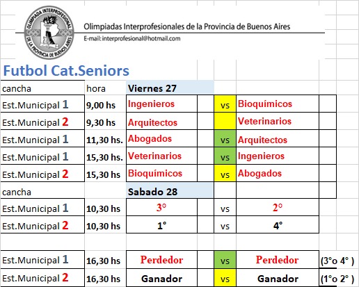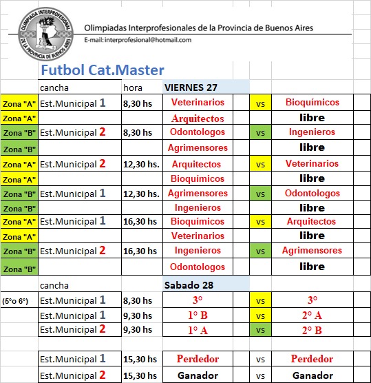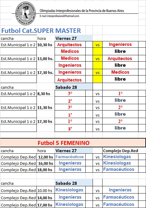 Información Deportiva (Días, horarios, y lugares de juego)