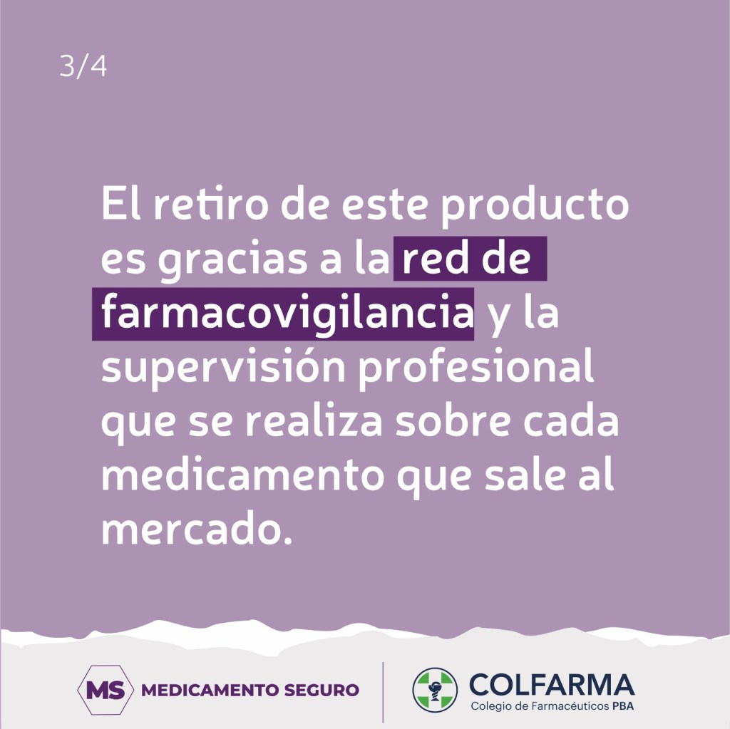 El retiro de este producto es gracias a la red de farmacovigilancia y la supervisión profesional que se realiza sobre cada medicamento que sale al mercado.