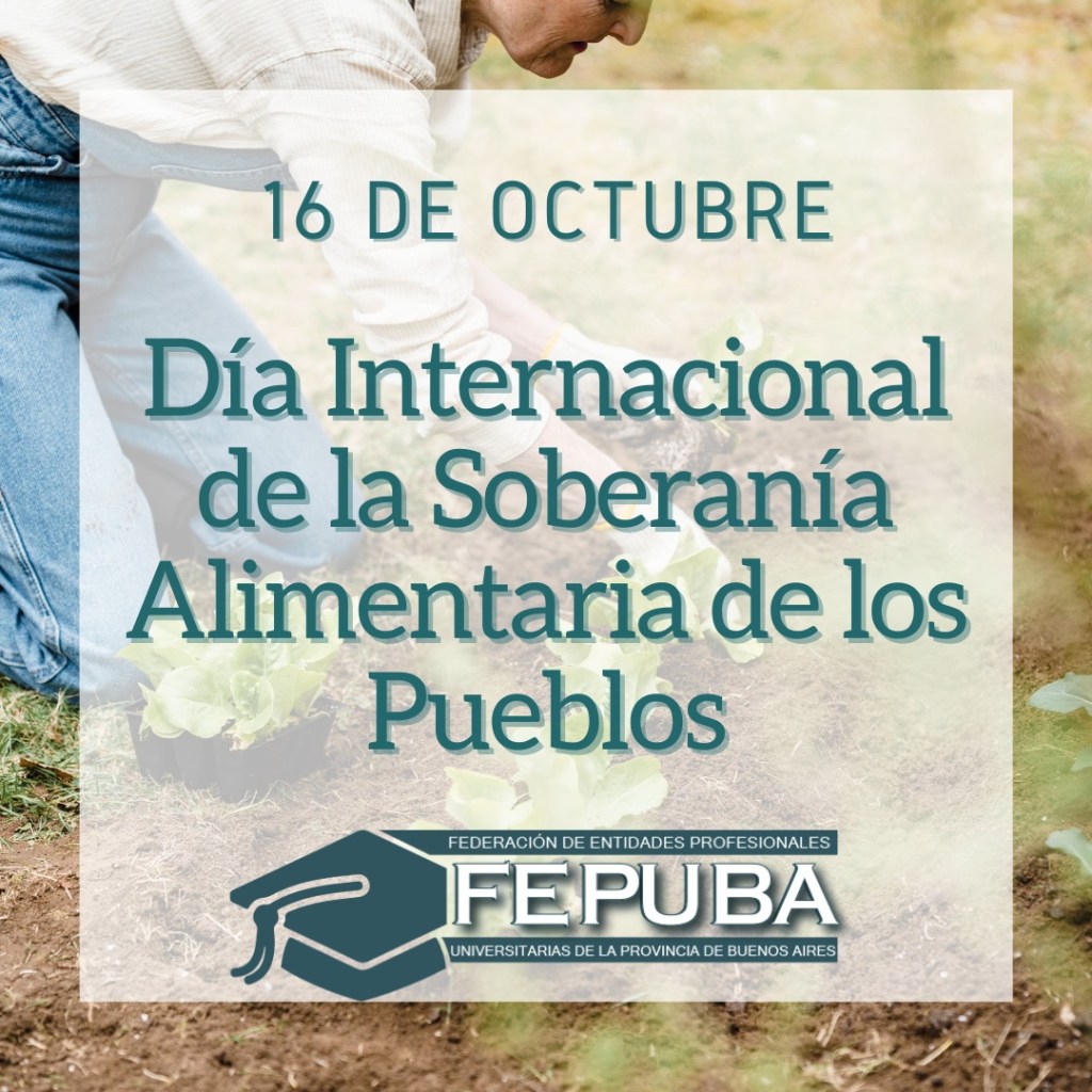 En este 16 de octubre, Día Internacional de la Soberanía Alimentaria de los Pueblos, la Federación de Entidades Profesionales Universitarias de la Provincia de Buenos Aires, reafirma su compromiso con el derecho de la ciudadanía para proveerse de alimentos de calidad, mediante al acceso soberano y sustentable a los territorios y a la biodiversidad.