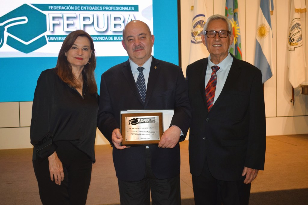 En la ocasión, se destacó el sentido homenaje realizado al vicepresidente académico de la UNLP, Dr. arq. Fernando Tauber «en reconocimiento a su destacada trayectoria académica e institucional, y su permanente compromiso en defensa de la universidad pública, gratuita y de calidad». Asimismo, el Colegio de la Abogacía de La Plata hizo lo propio con el presidente de FEPUBA, arq. Daniel Delpino «en reconocimiento a FEPUBA por su constante trabajo y compromiso con el crecimiento y el fortalecimiento de las entidades profesionales universitarias».
