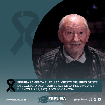 FEPUBA lamenta el fallecimiento del presidente del Colegio de Arquitectos de la provincia de Buenos Aires, Arq. Adolfo Canosa