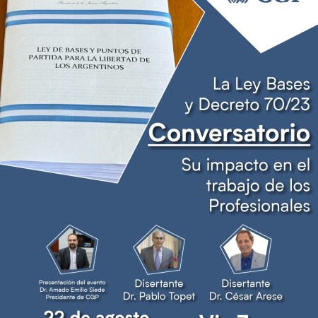 Se realizará el conversatorio: «La Ley Bases y Decreto 70/23. Su impacto en el trabajo de los profesionales»